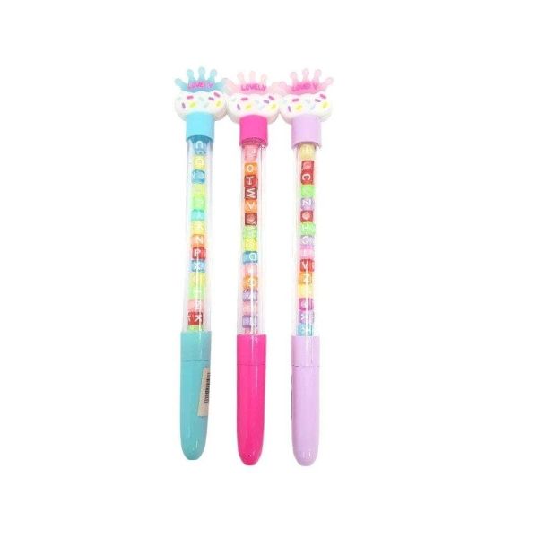 قلم جاف سن ابرة بغطاء جسم شفاف بخرز Blue رقم QQ-3109