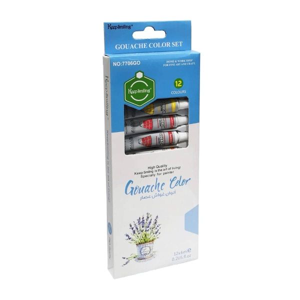 طقم الوان جواش انابيب 12لون 6مللى علبة كرتون Keep Smiling رقم 7706GO