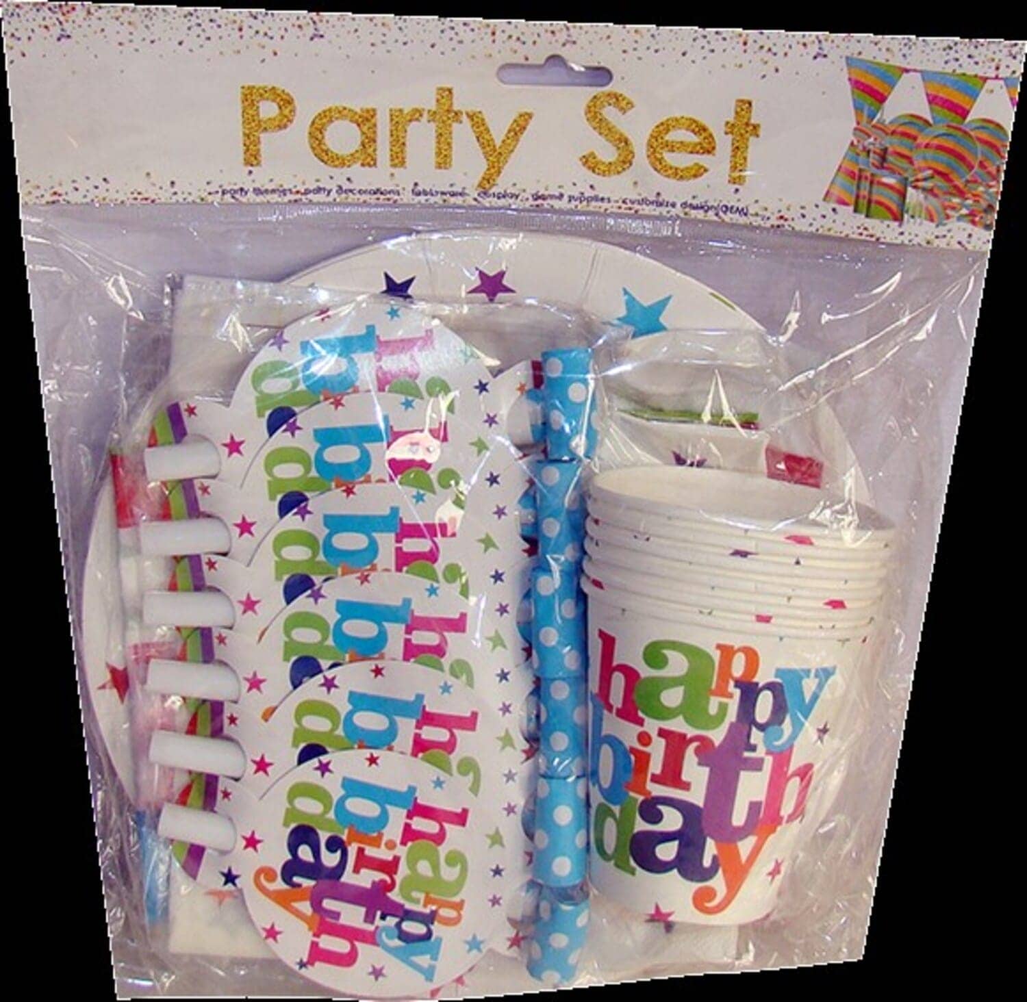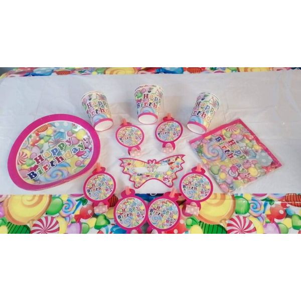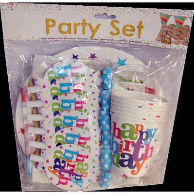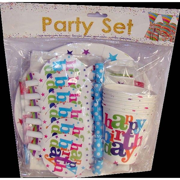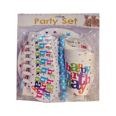 كيس طبق كرتون 6 قطعة + 6اكواب + 6 صفارة + مناديل +بانر SA003