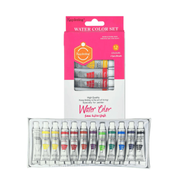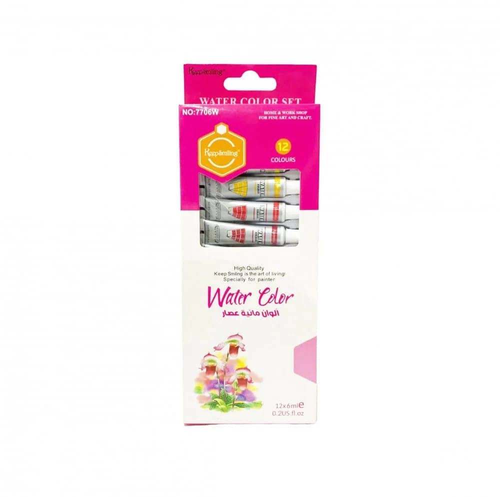 طقم الوان مائية انابيب 12لون 6مللى علبة كرتون Keep Smiling رقم W7706